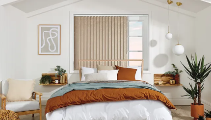 Vertical blinds are a simple and budget-friendly solution for wide or shaped windows. Our collection is full of fresh designs and everything is quality tested to last. Our in-home service includes expert measuring and fitting too, for a perfect fit even in the trickiest spaces.